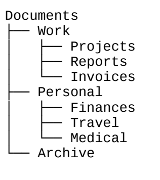 Use broad top-level folders like Work, Personal, or School